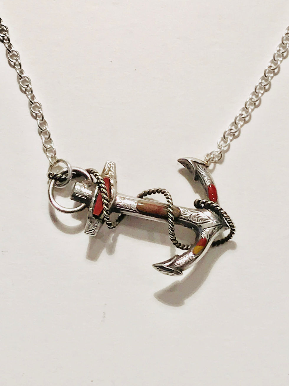 Antique Silver and Scottish Agate/Cornelian Set Anchor Necklace